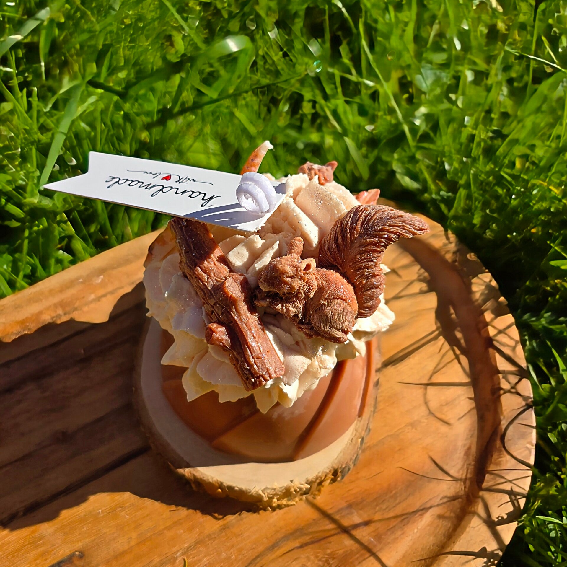 Jede Kerze wird in liebevoller Handarbeit hergestellt und verzaubert durch ihr einzigartiges Design und ihren angenehmen Duft nach Orange und Vanille-Toffee