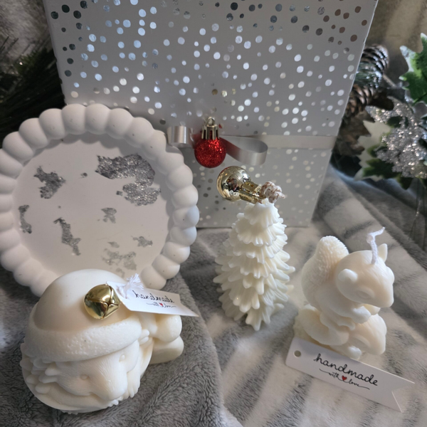 Dieses festliche Weihnachtskerzen-Set besteht aus wunderschön gestalteten, handgemachten Sojawachskerzen in winterlichen Motiven – perfekt als Geschenk, kleine Aufmerksamkeit oder als duftende Deko für dein Zuhause.